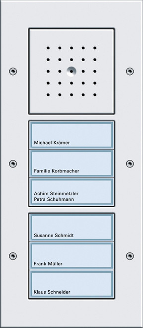 - Namensschild des Ruftasters ohne Werkzeug und ohne Rahmendemontage austauschbar.