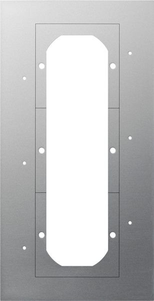 - Montageplatte zum Abdecken der Installationsöffnungen bauseits vorhandener Türsprechanlagen bei der Nachrüstung des Gira Türkommunikationssystems.