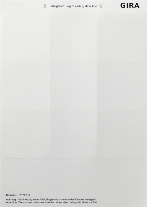 Beschriftungsbögen für Flächenschalter Reinweiß glänzend 69 x 67 mm 9 Schriftfelder