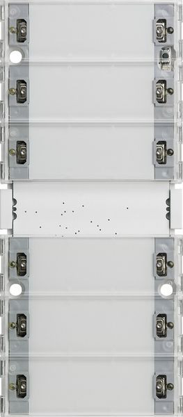 Mehrfarbige Status-LED (rot, grün, blau) über die ETS parametrierbar, zwei Status LED je Bedienfläche, Beschriftungsfeldbeleuchtung, integrierter Temperatursensor zum Messen und Weiterleiten der lokalten Raumtemperatur, Montage auf Busankoppler 3, Projektierung und Inbetriebnahme erfolgt ab ETS3.0d Patch A, Demontageschutz durch Verschraubung, inkl. neutraler Beschriftungsfelder