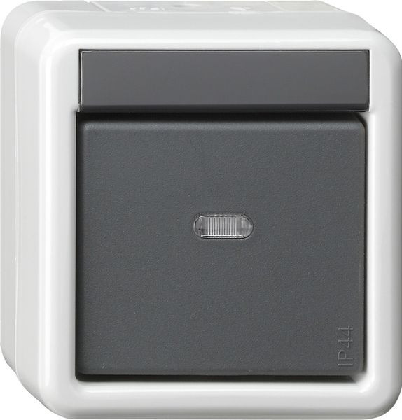 Taster-Busankoppler WG AP 1fach mit Kontrollfenster und 2-Punkt-Bedienung für KNX Grau