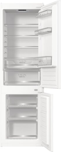 Der integrierte Einbau-Kühl-Gefrierschrank mit einem Gesamtvolumen von 270 Litern bietet eine praktische Kombination aus Kühlraum (195 l) und Gefrierfach (75 l). Dank FrostLess-Technologie wird die Eisbildung reduziert, und das automatische Abtauverfahren im Kühlteil erleichtert die Wartung. Mit LED-Innenbeleuchtung, höhenverstellbaren Glasablagen und einer FreshZone-Schublade ist die Organisation besonders komfortabel. Die elektronische Steuerung mit LED-Anzeige ermöglicht eine einfache Bedienung, während ein akustischer Alarm bei geöffneter Tür zusätzliche Sicherheit bietet. Mit Energieeffizienzklasse D und einem jährlichen Verbrauch von 177 kWh ist das Gerät effizient. Der wechselbare Türanschlag sorgt für flexible Installation in jeder Küche.