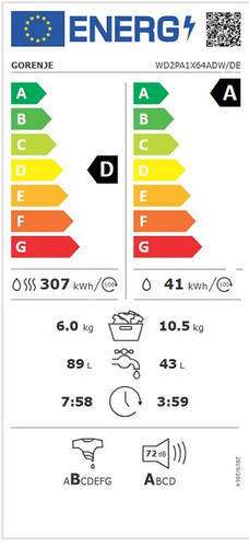 | Energieeffizienzklasse kompletter Wasch-/Trockenzyklus (2019/2014/EU) | D |