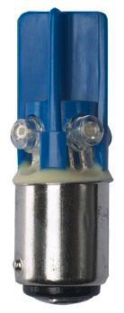 Farbintensives LED-Leuchtmittel mit hoher Lichtintensität und handelsüblichem Ba15d-Sockel.