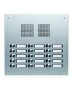 Die Serie ROBUSTA ist ausgestattet mit Eigenentwicklungen aus unserem Hause, wie z. B. den Tastern der Serie PROTACT oder dem LED-Namensschild. Bei diesem Artikel handelt es sich um eine bündig abschließende Unterputz-, Audio-Türstation mit insgesamt 15 Klingeltastern und 15 Namensschildern die dreireihig angeordnet sind. Der PROTACT Klingeltaster mit seiner taktilen Rückmeldung gibt Ihnen ein angenehmes Gefühl beim Betätigen und das Namensschild rundet visuell nochmals mit seiner LED-Beleuchtung die Front ab. Die 2,5 mm dicke Frontplatte ist aus Aluminium (Silber eloxiert), was der Türstation einen edlen Look verschafft. Neben dem verzinktem Unterputzkasten und den diebstahlsicheren Befestigungsschrauben, besitzt die ROBUSTA einen integrierten Lautsprecheradapter und bietet Ihnen zusätzlich so die Möglichkeit einen GROTHE Lautsprecher einzubauen. Der patentierte Lautsprecheradapter bieten mit den getrennten Kammern sowie dem Wasserableitsystem eine optimale Akustik und den besten Schutz gegen Witterungseinflüsse.