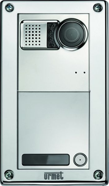 Türlautsprecher mit einer Klingeltaste der Serie Sinthesi Steel für die IPercom-Technologie.