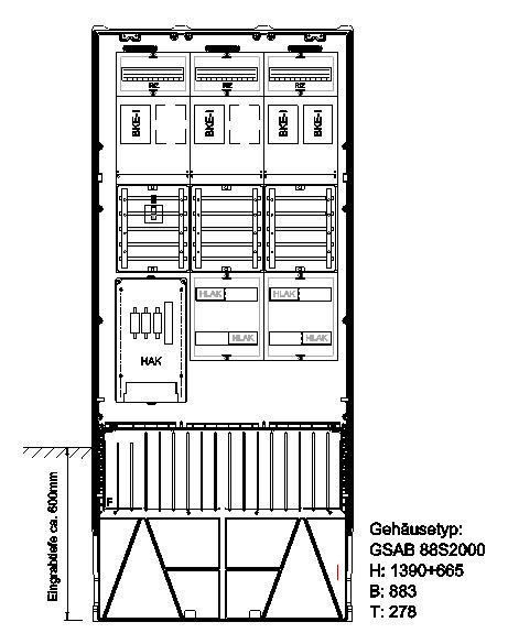 | Kurzbeschreibung | Zähleranschlusssäule Bayernwerk (4Zähler BKE-I) 2xReserveplatz BKE-I |