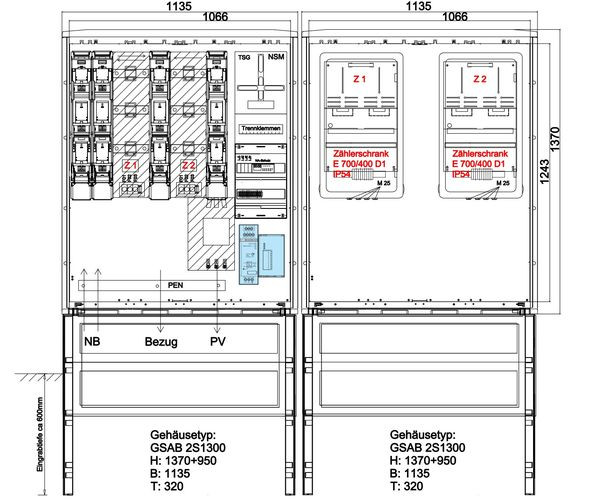 | Kurzbeschreibung | Wandlermessung Energienetz Mitte 400A Überschusseinsp. mit NA-Schutz bis 200kVA inkl. Sockel |