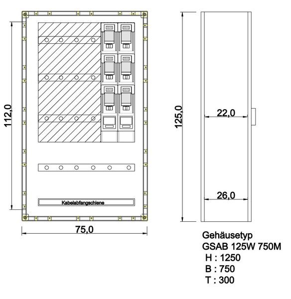 | Kurzbeschreibung | GfK-Wandschränke IP 55 H 1250 x B 750 x T 300 Einfachschließung, Sammelschiene, 2xLastschaltlleiste |