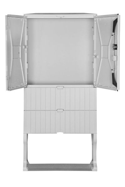 Flachschränke mit Sockel H 1600 x B 745 x T 226 mit Montageplatte Technische Details: Gehäuse aus GFK; Schutzart IP44; Abmessungen: H: 1600 mm, B: 745 mm, T: 224 mm; RAL 7035.