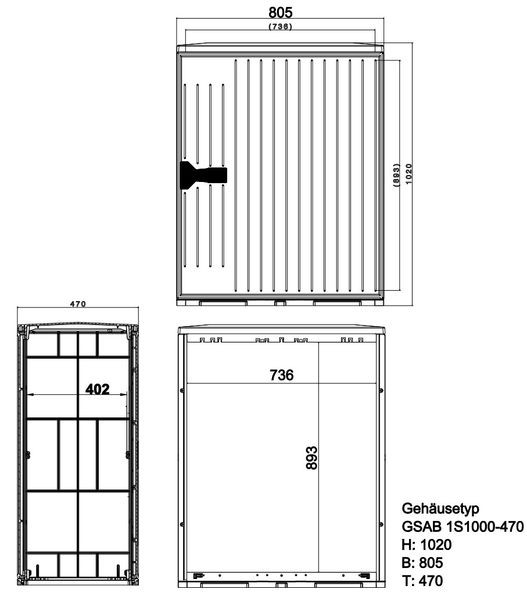 | Kurzbeschreibung | Normkabelverteilerschrank Gr.1 ohne Sockel HxBxT:1020x805x470, Powder In-Mould Coating |