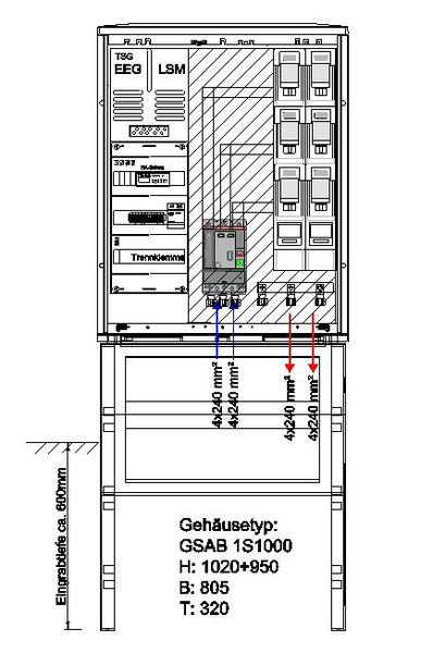 | Kurzbeschreibung | NA-Schutzschrank Gr.1 ohne Sockel HxBxT:1000x805x320 nach VDE-AR-N 4105, 200kW |