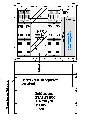 | Kurzbeschreibung | Verteilerschrank für Emobility H:1020 x B:1135 x T:320mm für 8x11KW Abgänge |