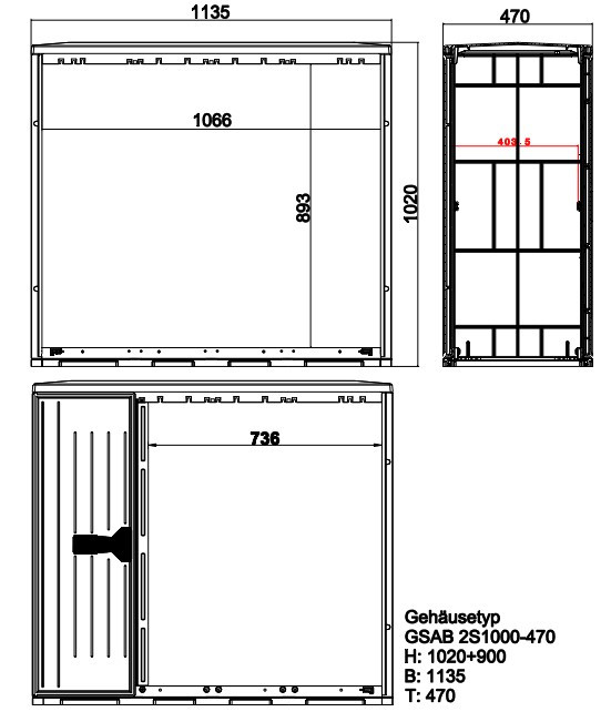 | Kurzbeschreibung | Verteilerschrank HxBxT:1020x1135x470 1/3-Tür und 2/3-Tür Einfachschl., Montageplatte PVC 6m |