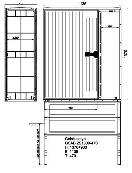 | Kurzbeschreibung | Verteilerschrank HxBxT:1300x1135x470 2/3-Tür und 1/3-Tür Doppelschwenkhebel |