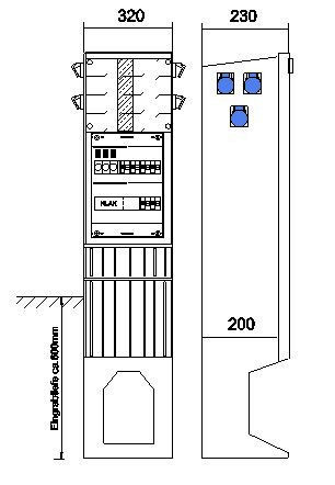 Festplatzverteiler mit Sockel HxBxT:1420x320x234mm best.mit 6xCE16(an Gehäuseaußenwand) inkl.FP-Einf
