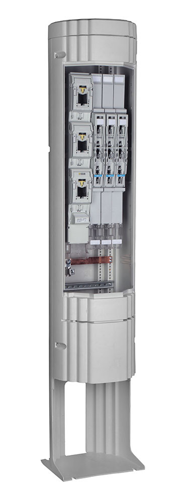 GSAB-Poller, Höhe 1811mm, Durchm. 360mm, Sammelsch. 30x5 (185mm), 1x NH2 + 3xNH00-Lastschaltleiste