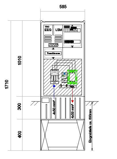 | Kurzbeschreibung | NA Schutz Anschlußsäule H:B:T:1710:580:280mm Doppelschließung bis 55kW 3pol.Variante TN-C-Netz |