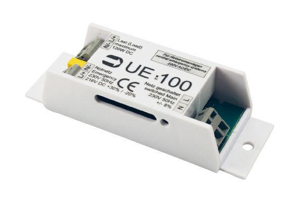 | Kurzbeschreibung | UE100-BOX - Umschalteinheit 100 | als Umschaltung für Zentralbatterieanlagen 220V AC/DC bei Anliegen einer Spannung am Eingang | max. 120W | im separa |