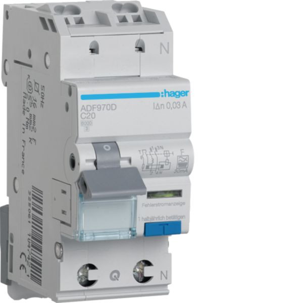 HAGER ADF920D FI-LS 1P+N 6kA B-20A 30mA Typ F