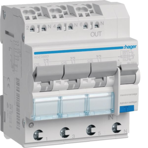 HAGER ADZ316D FI-LS 3X 1P+N 6kA B-16A 30mA