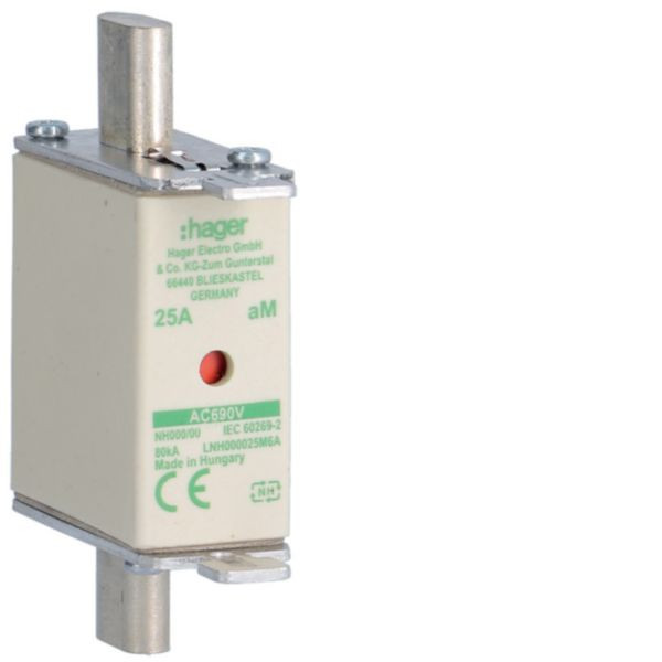 NH-Sicherungseinsatz NH000 690V aM 25A Kombimelder Grifflasche spannungsführend