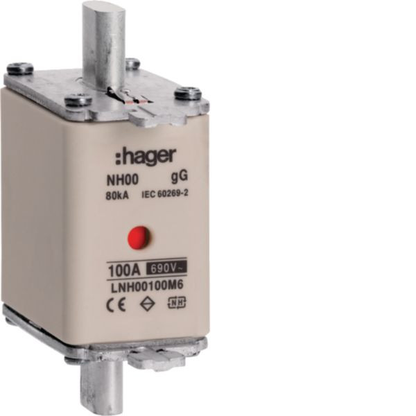 NH-Sicherungseinsatz NH00 gG AC690V 100A Kombi-Melder mit Metall-Grifflasche