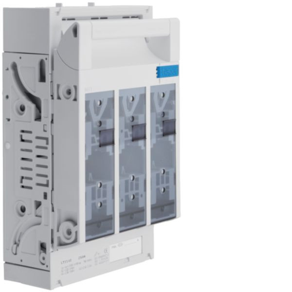 NH1-Sicherungslasttrennschalter für Sammelschiene mit 60mm Abstand und einer Nennstromkapazität von 250A. Geeignet für NH Sicherungseinsätze gemäß IEC 60269-2 / DIN VDE 0636-2. Ausgestattet mit 3-Poligem Schaltunterteil, Allpolig schaltend, und plombierbarem Griffeinsatz mit Berührungsschutz. Ideal geeignet für Energieverteilungen, zeichnet sich besonders durch hohe Zuverlässigkeit und eine robuste Bauweise aus.