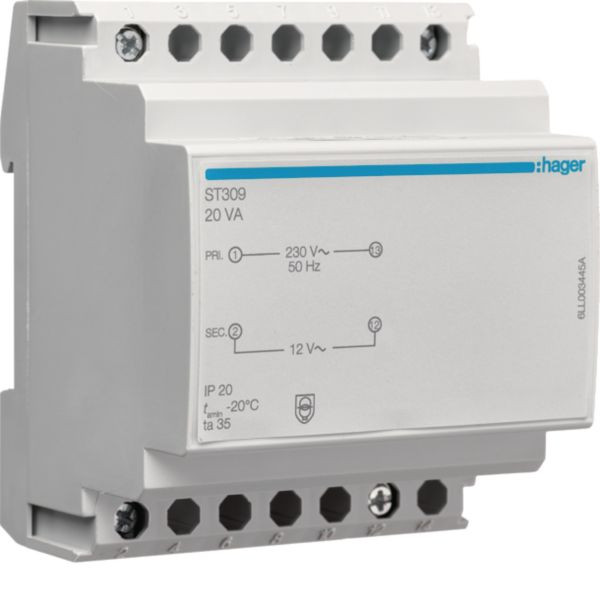 HAGER ST320 Sicherheitstrafo 230V/12V 18VA 2PL