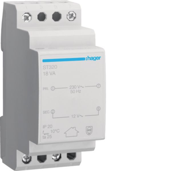 HAGER ST309 Sicherheitstrafo 230V/12V 20VA 4PL
