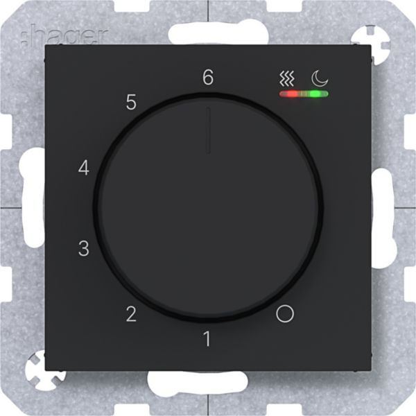 Temp.regler 230V/15W, Dreh-/Druckknopf, Heizen/Kühlen, A.x/C.x, n.schwarz matt
