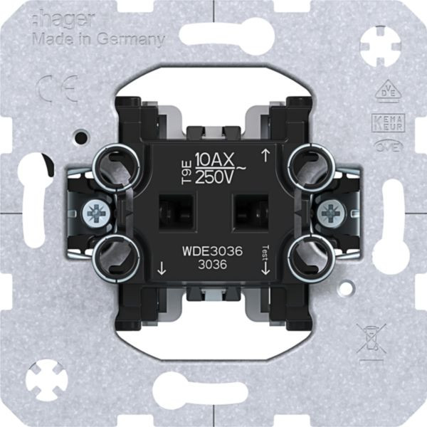 | Kurzbeschreibung | Aus-/Wechselschalter, Unterputz Wippschalter-Einsatz, 10Ax/250V, IP20, N-Klemme |