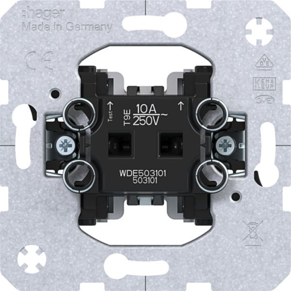 Taster Schließer, 2 Meldekontakten, Wipp-Einsatz Unterputz, 10 A