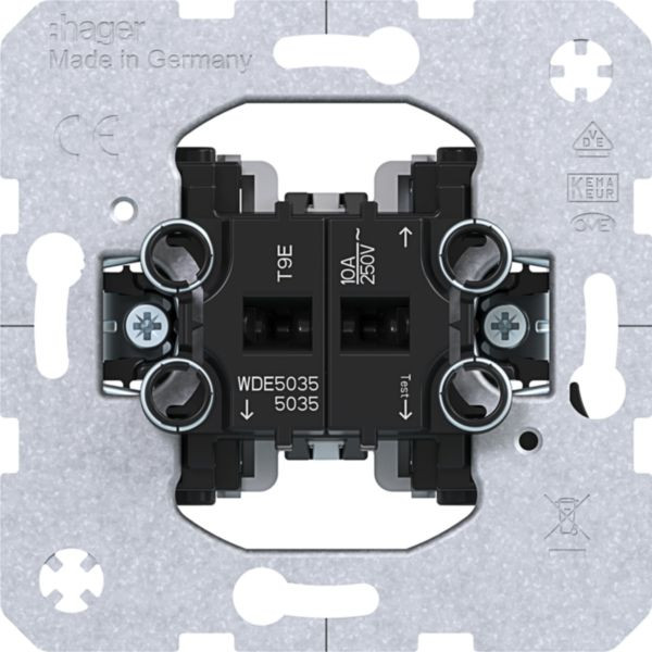 | Kurzbeschreibung | Serientaster, Wippentaster, Unterputz, 2 Schließer, gemeinsame Eingangsklemme |