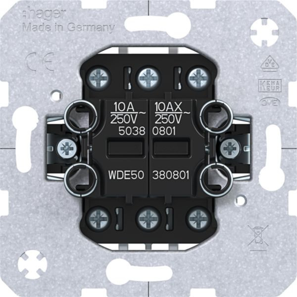 Serien Wechsel-Schalter/Taster, Schalter rechts, Taster links, Einsatz UP, 10 A