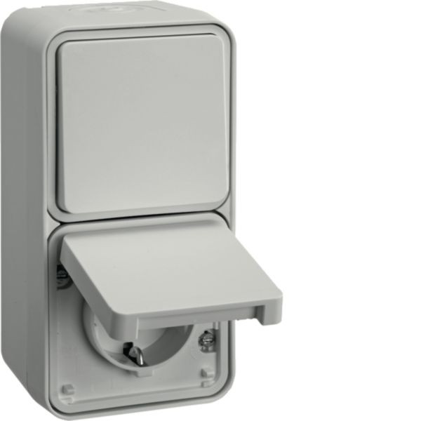 Wechselschalter/Steckdose SCHUKO Klappd. erh. B.schutz, AP senk.,W.1 IP55,p.weiß