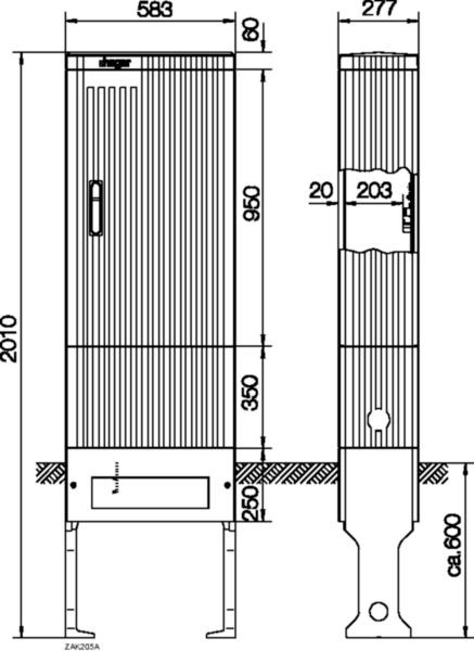 Kabelverteilersäule, ZAS, Baureihe 205, mit Sammelschienensystem, 4 x E-Cu