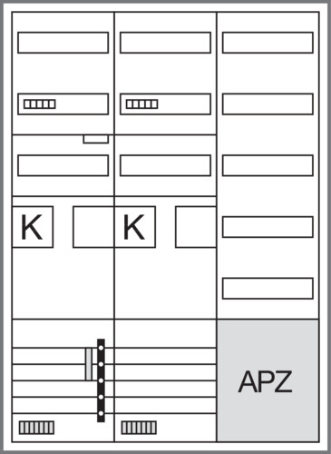 | Kurzbeschreibung | Komplettschrank, univers Z, 2 Zählerplätze, BKE-I, APZ, VT5, H=1100mm, 3-feldig |