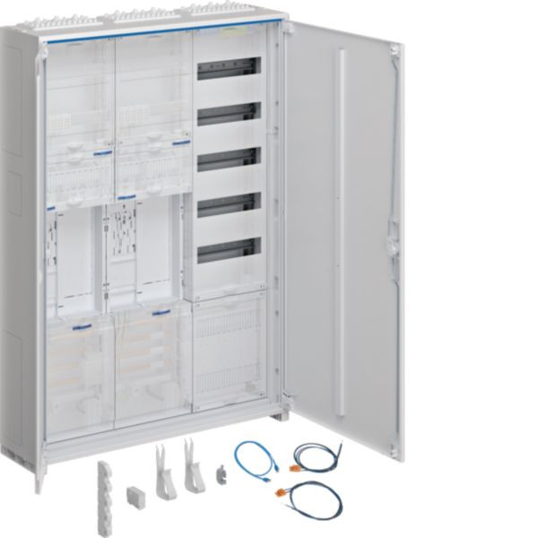 Der Komplettschrank univers Z mit den Maßen H=1100mm ist speziell für die Aufputz-Montage konzipiert und bietet zwei Zählerplätze sowie eine APZ. Ausgestattet mit einer BKE-I und einem oberen Kabelkanal OKK, unterstützt er die Installation von VT5. Die 3-feldige Struktur ermöglicht eine flexible Nutzung und Anpassung an unterschiedliche Installationsbedingungen. Ideal für den Einsatz in Gebäuden, die eine sichere und übersichtliche Energieverteilung erfordern.