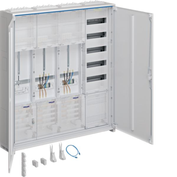 Der Zähler-Komplettschrank, univers Z, verfügt über zwei Zählerplätze und einen APZ. Mit einer Höhe von 1100 mm und vier Feldern bietet er ausreichend Raum für die Installation eines Stromzählers und Sicherungsglieds. Geeignet für Aufputz-Montage. Ideal für den Einsatz in Wohn- und Geschäftsgebäuden, erfüllt er alle gängigen Sicherheitsstandards.