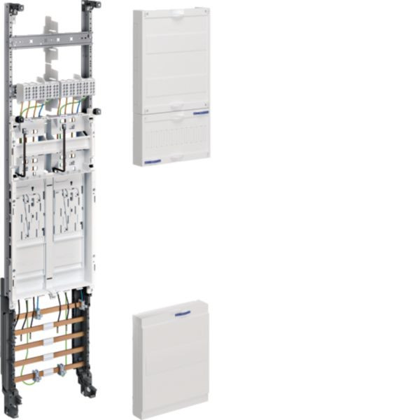 Das Komplettfeld univers Z mit zwei Zählerplätzen BKE-I) sowie OKK) bietet eine effiziente Lösung für die Energieverteilung. Mit einer Höhe von 1050mm und einteiliger Konstruktion ermöglicht dieses Zählerfeld eine flexible und platzsparende Installation in technischen Räumen. Es ist ideal für den Einsatz in Wohn- und Geschäftsgebäuden, unterstützt die strukturierte Energieverteilung und erleichtert Wartungsarbeiten.