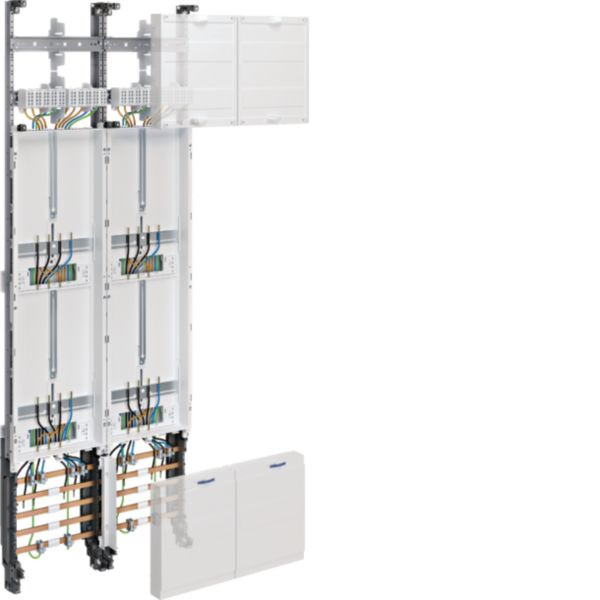 Das Komplettfeld univers Z, 1350mm mit 4 Zählerplätzen für Mitteldeutschland geeignet ist für die Energieverteilung optimiert. Es handelt sich um ein 2-Feld-System, das robuste Bauweise mit funktionaler Flexibilität kombiniert. Geeignet für den Einsatz in Energieversorgungsanlagen, bietet es hohe Sicherheit durch integrierte Schutzmaßnahmen nach VDE-Normen.