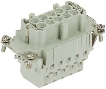 Einsätze, Käfigzugfederanschluss, Buchse, Polycarbonat (PC), RAL 7032 (kieselgrau), Bemessungsstrom: ?16 A, Baugröße: 10 B, Kontakte: 10, Leiterquerschnitt: 0,14 ... 2,5 mm², Kupferlegierung, versilbert