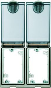 | Kurzbeschreibung | Einbaurahmen, zweifach, Metallausführung, matt vernickelt (elektrisch leitend), transparenter Kunststoffdeckel, Zink-Druckguss |