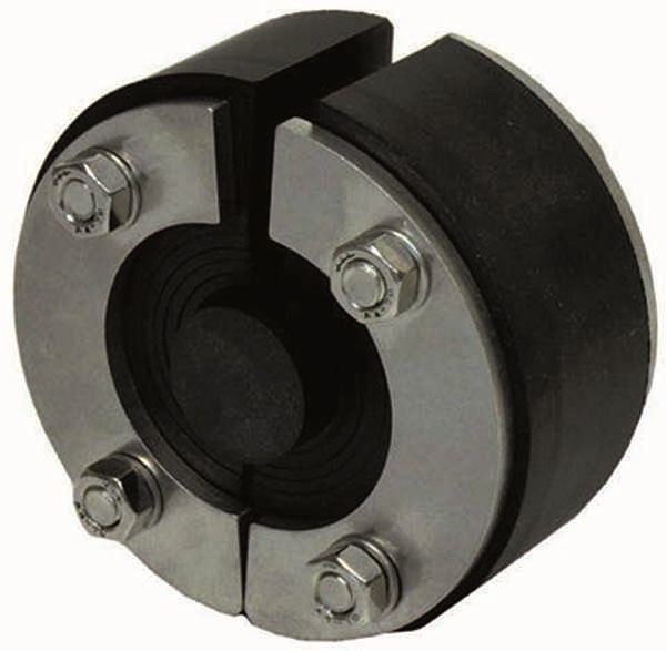 Standard-Ringraumdichtung mit Segmentringtechnik, individuelle Anpassung auf Leitungsdurchmesser vor Ort, Ringraumdichtung zur Abdichtung von Kabeln in Kernbohrungen oder Futterrohren, geteilte Ausführung zur Abdichtung von neu zu installierenden oder bereits verlegten Kabeln, unbelegte Öffnungen ab Werk mit Blindstopfen verschlossen, Dichtbreite 40 mm, Pressplattenstärke 5 mm, Werkstoff Edelstahl rostfrei V2A (Pressplatten, Schrauben, Muttern und Scheiben), Dichtung EPDM, Lastfall: WU-Beton Beanspruchungsklasse 1; WU-Beton Beanspruchungsklasse 2; Wassereinwirkungsklasse DIN 18533 W1.1-E; Wassereinwirkungsklasse DIN 18533 W1.2-E; Wassereinwirkungsklasse DIN 18533 W2.1-E; Wassereinwirkungsklasse DIN 18533 W2.2-E, gas- und wasserdicht