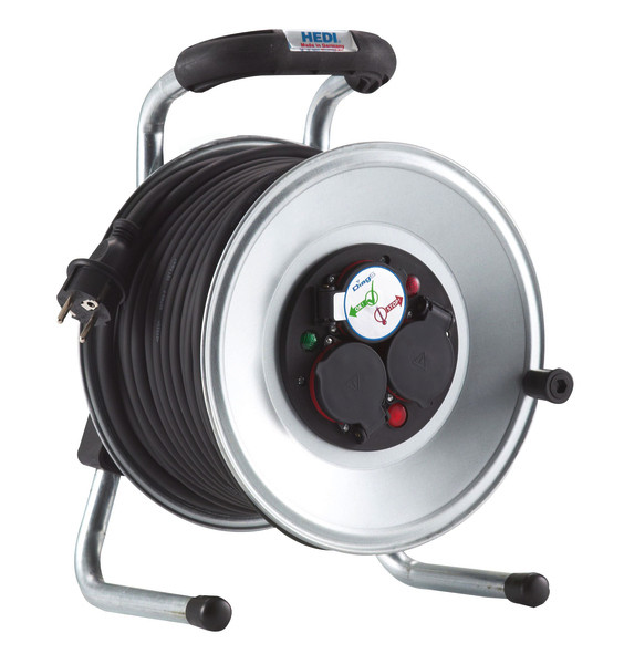 Stahlblech-Kabeltrommeln Primus Trommel in verzinkter Stahlblechausführung. Mit standfestem Stahlrohrrahmen, ergonomischen, isoliertem Bügelgriff, Stecker Parkstation, Rotationsstopp-Schalter, geerdeter Stahltrommel und extremer Standsicherheit durch niedrigen Schwerpunkt. Mit spritzwassergeschützter 3-fach Steckdose, Thermoschutzschalter nach VDE 0620 und HEDI DiagS. Höhe: 358 mm; Breite: 258 mm; Trommeldurchmesser: 255 mm Zugelassen für den ständigen Einsatz im Freien, Entspricht den Vorgaben der DGUV I 203-005 (ehemals BGI 600), K1. Schutzart IP44