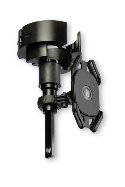 Prüfgerät RWM zur schnellen, effizienten Durchführung von Funktionstest, Montage, Demontage, Austausch, Klebemontage und Wartung des Genius-Rauchwarnmelder vom Boden aus. Integrierte Smartphone-Halterung für optimale Zuverlässigkeit der Smartsonic Datenübertragung zur Genius Pro App.