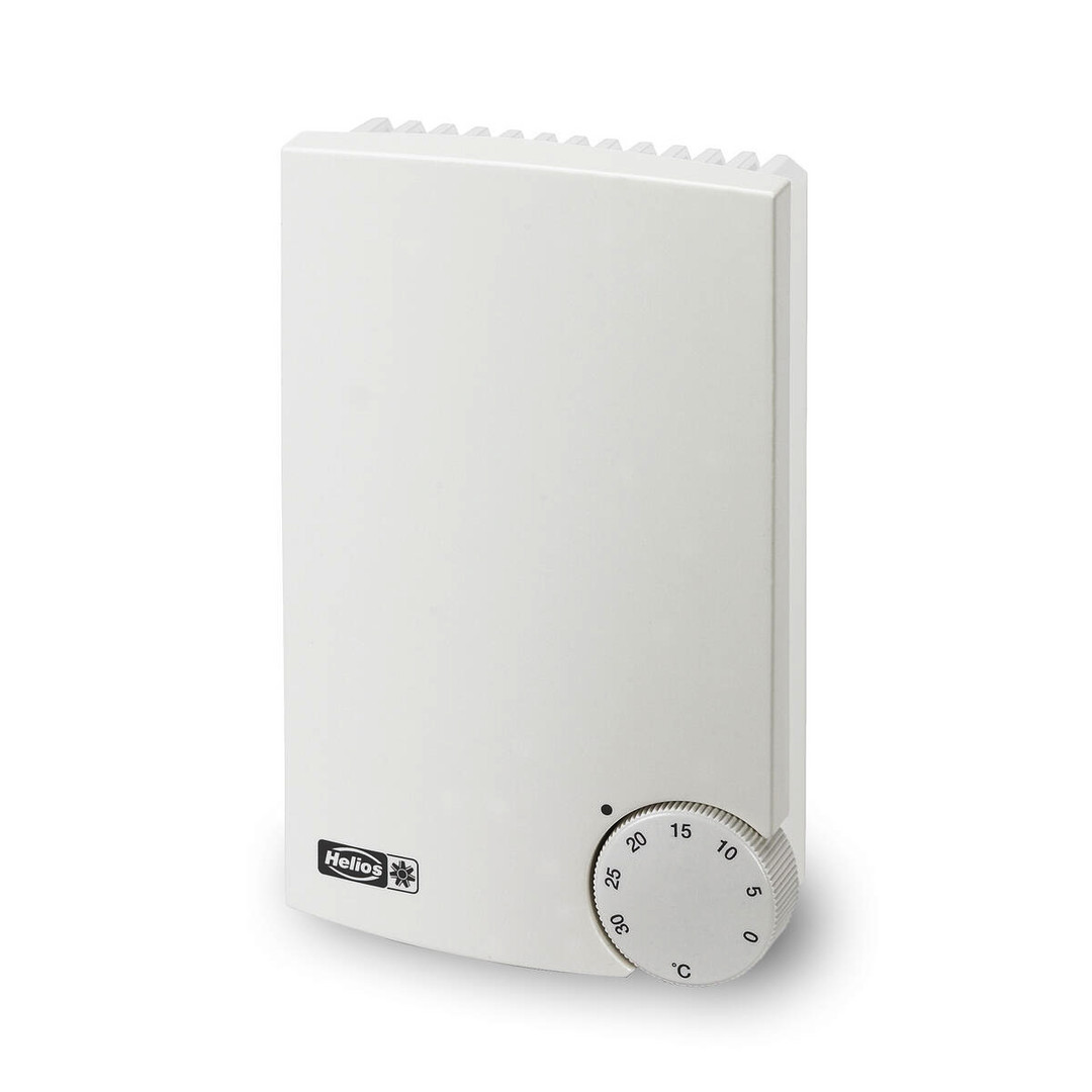 Elektronisches temperaturgeführtes, halbleitergesteuertes Reglersystem für EHR. Weißes Kunststoffgehäuse für Wandmontage. Konstante Zuluft- oder Raumregelung über eingebauten Temperaturfühler. Umschaltbar auf externe Kanal- oder Raumfühler (Zubehör). Automatische Erkennung der Versorgungsspannung 230 V 1~ oder 400 V 2~ (L-L). I max. 16 A, IP 20.