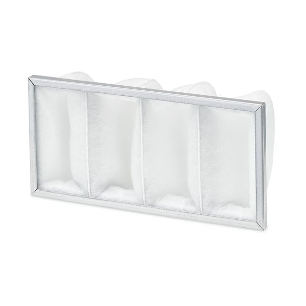 Ersatz-Filterkassette auf tragendem Rahmen für hohe Staubaufnahme, großflächig dimensioniert. Aus regenerierbarer Kunstfaser, Klasse G 4, stark verfestigt, 190 g/m². Entsprechend DIN 53438 F1, selbstverlöschend. Abscheidegrad 91,3 %. Staubeinspeicherung 354 g/m².