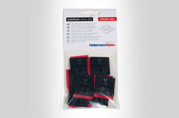 Als Schraub- oder Klebesockel einsetzbar. Perfekte Systemlösung in Kombination mit Kabelbindern. Spezielles Design hält den Kabelbinder in Position. Montageprozesse werden vereinfacht. Sehr gute Anfangshaftung die mit der Zeit zunimmt. Innovative Befestigungslösung für hoch- und niederenergetische Oberflächen. Q-Mount Befestigungssockel in Kombination mit Q-tie Kabelbindern sorgen für eine zuverlässige und dauerhafte Befestigung. Mit dem speziellen SolidTack Kleber ist der Q-Mount eine innovative Befestigungslösung für niederenergetischen Oberflächen und wo Lochbohrungen nicht gewünscht oder möglich sind. Die Klebesockel eignen sich für eine Vielzahl von Anwendungen auf lackierten Oberflächen, Kunststoffen oder Metallen. Der Sockel kommt in Bereichen wie dem Schaltschrankbau, Schienenfahrzeugbau, der Luft und Raumfahrt sowie bei Automobilen und Landmaschinen zum Einsatz.